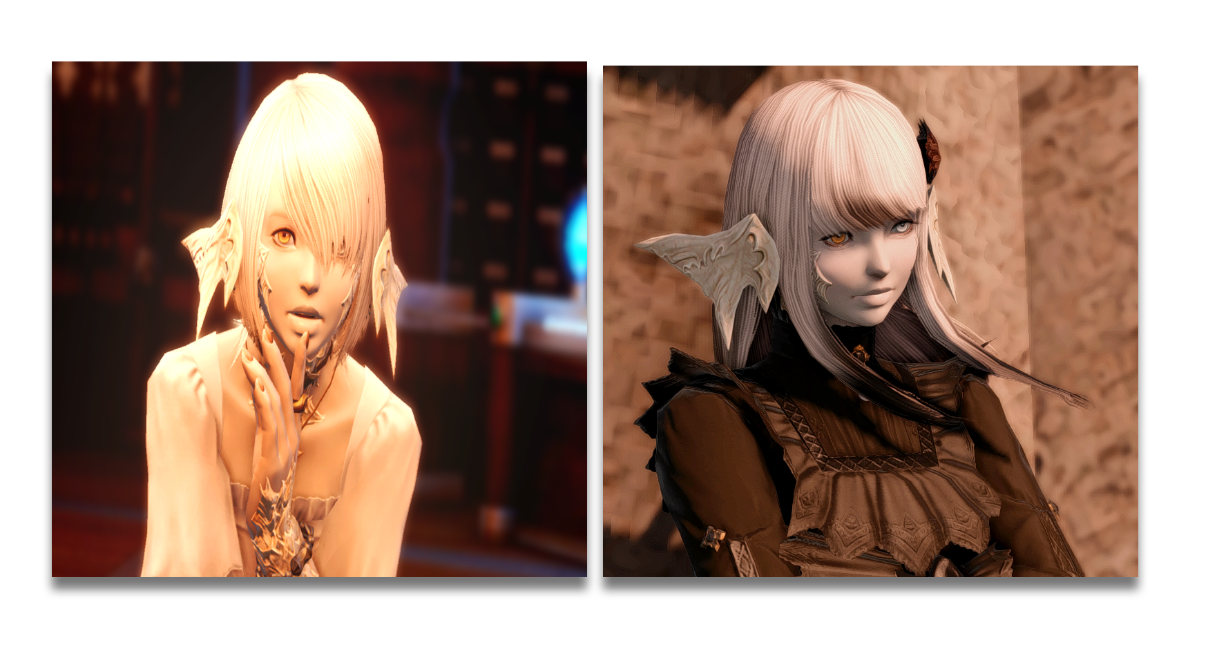 During the events of Final Fantasy XIV: A Realm Reborn, Oora's hair is significantly shorter. Over the course of the story, she grows out her hair as a way of expressing her freedom and emancipation from her family.