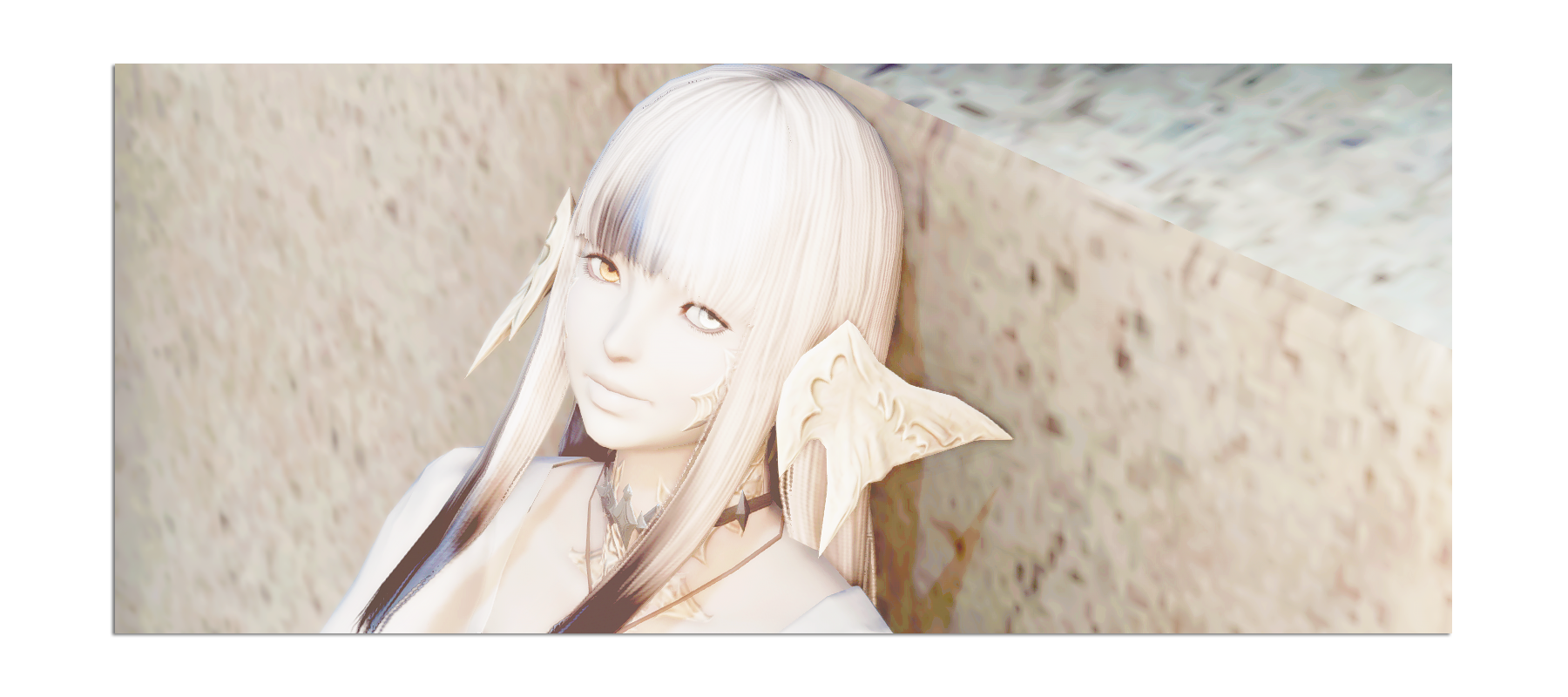 Oora is a twenty-six year old Au Ra with long white hair, speckled with patches of dark hair on her bangs and at the ends. She has an extremely short stature, coming in at around 4 fulms and 9 ilms. With her heterochromia, her left eye is a pale white, and her right is a shade of amber.